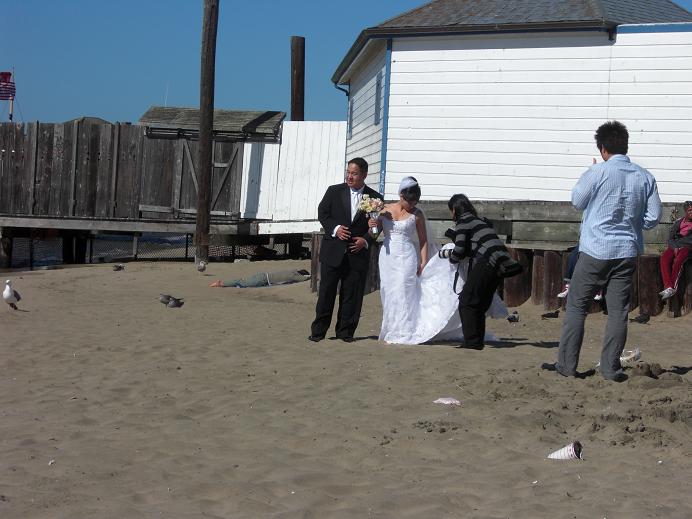 結婚式を終えた感じの新郎新婦に出会ってしまったのでした